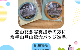 令和7年度【塩手山登山】登頂記念缶バッジプレゼント!