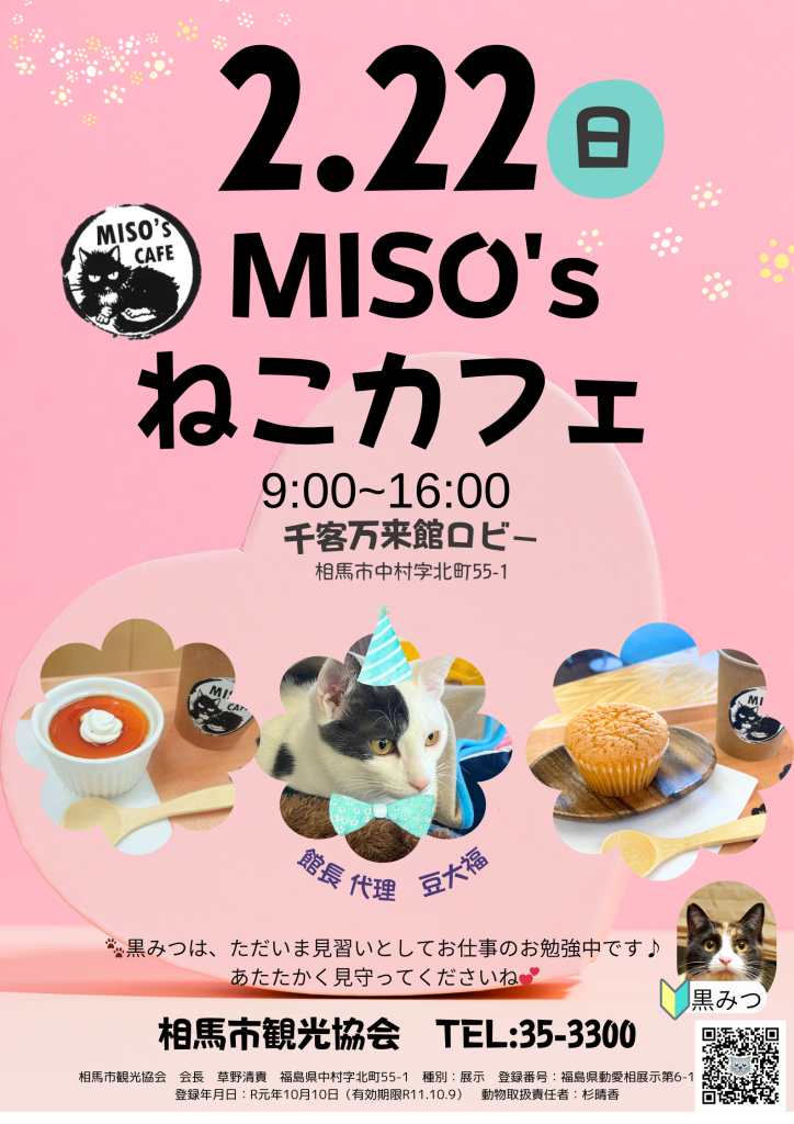 千客万来館 永久ネコ館長「みそ」の代理として、 館長代理「豆大福」と、見習いの「黒みつ」が出勤します!