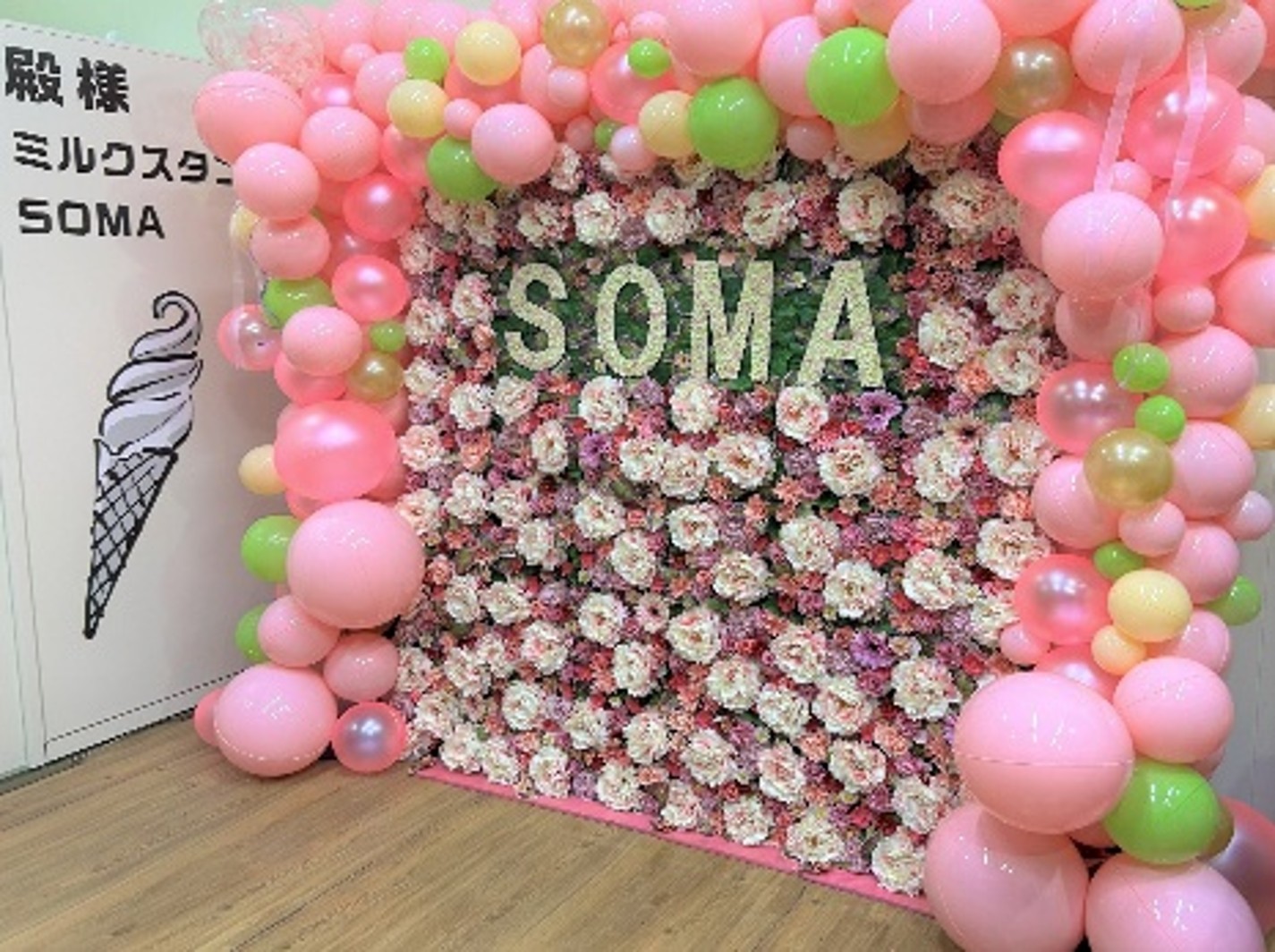こだわりの牛乳を使用したソフトクリームなどのスイーツが味わえる殿様ミルクスタンドSOMA内にフラワーアーティスト萬木善之さんやバルーンアーティストとコラボアート作品『SOMA ART WALL』と題した映えスポットが2026年2月10日(火)に完成!ふくしまDC期間(~6月30日)を盛り上げます!