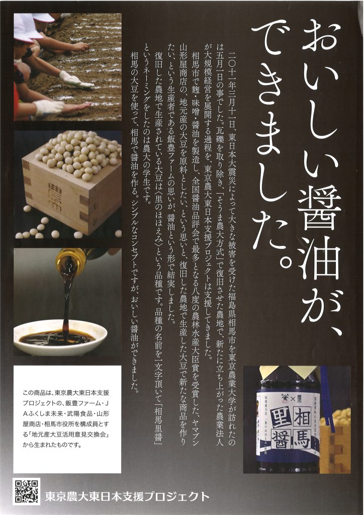 福島県相馬市産大豆を用いた醤油「相馬里醤」発売のお知らせ – 東京農大東日本支援プロジェクト