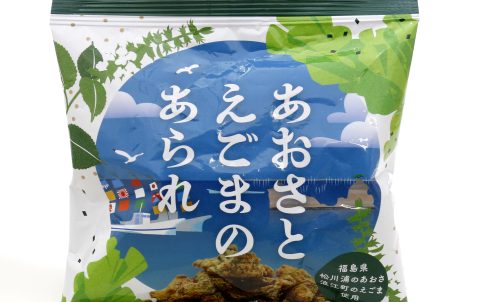 松川浦産の粉末あおさと浪江町のえどまパウダーを使用してつくったあられです。試行錯誤を繰り返し、1年以上かけて作り上げた商品です。あおさたっぷっりのあられが堪能できます。