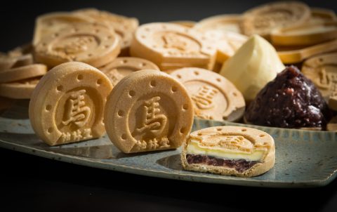 北海道産の最高級の小豆を使ったつぶしあんとバターのクリームの2層の最中。プレーン・醤油・キャラメル・コーヒー・宇治抹茶・きなこと6種類。